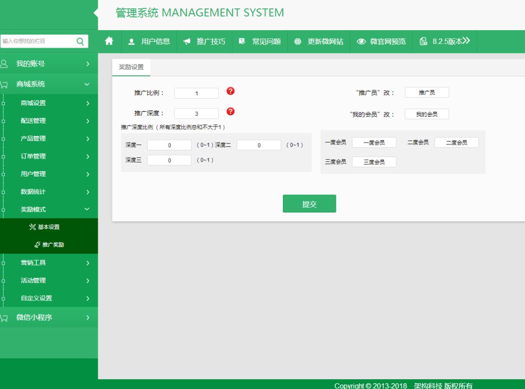 通過小程序商城后臺對分銷功能的設置,我們可以看出成為推廣員的門檻很低,而推廣員獲得的獎勵也會因其推廣的比例和深度有所不同。分銷功能可以最大化地將客戶或用戶轉化成推廣員甚至是分銷商,基于路徑最短效果最穩的人際傳播,傳播的效果也更加有效,久之很有可能形成全員分銷的勢頭。